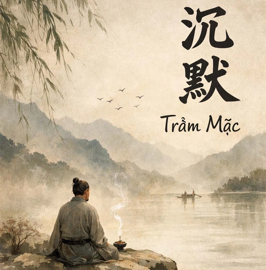 Khi hai chữ này đi cùng nhau, “trầm mặc” biểu đạt một trạng thái im lặng có chiều sâu, nơi con người chọn lắng mình xuống, giảm bớt lời nói để hướng vào suy tư và tự quán chiếu. Chiết tự như vậy cho thấy trầm mặc không phải là sự câm nín hay thờ ơ, mà là một dạng im lặng giàu nội tâm và ý nghĩa.